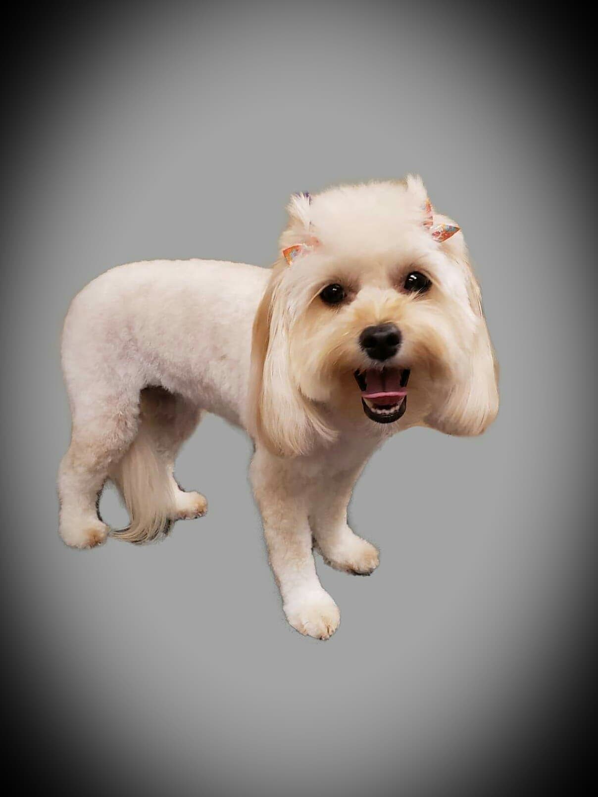 You can choose a full service groom or a mini groom. Full grooms can be styled however you wish. From short for easy maintenance, to fluffy and stylized. Mini grooms are great for the pup that needs a little sprucing up in between full grooms.
